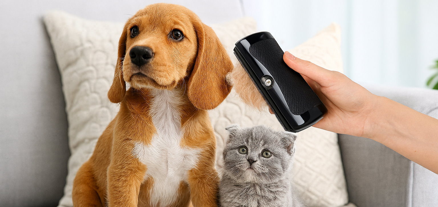Gently glide the Furvana Glide™ over fur. It removes loose hair and trims excess in seconds without hurting your pets.