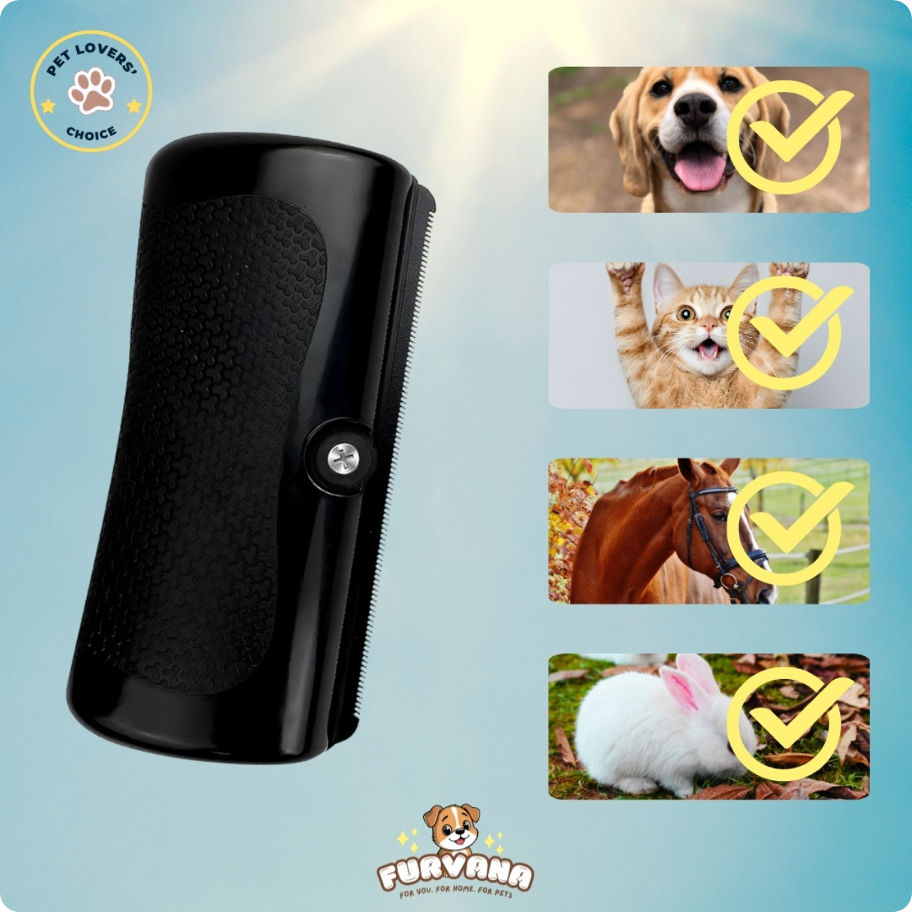 The Furvana Glide™ is a grooming tool designed to safely remove and trim hair from dogs, cats, rabbits, and horses.